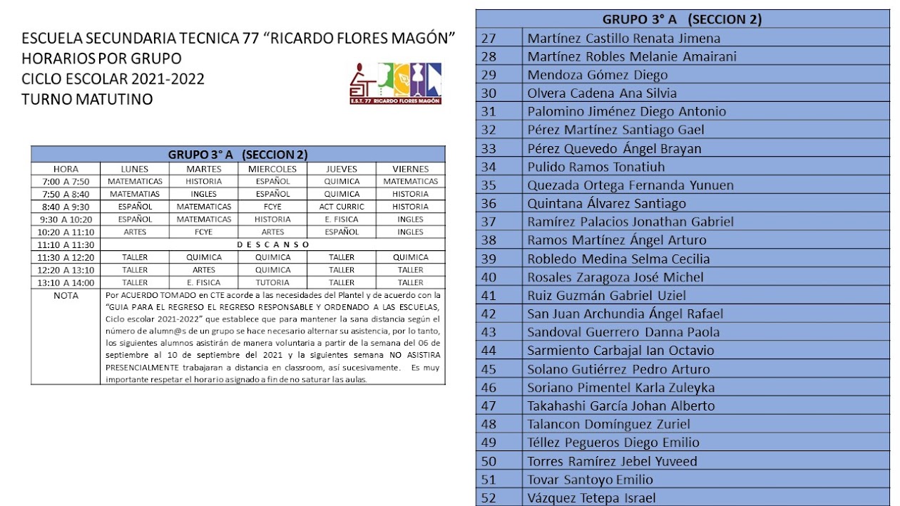 Estimados padres, madres y comunidad escolar de acuerdo a las instrucciones del la autoridad educativa a partir del lunes 5 de septiembre estas son las secciones nuevas semanales oficiales en las cuales los alumnos se presentarán en el plantel en caso de decidir asistir de manera presencial, los alumnos solo podrán asistir en la sección semanal que les corresponde por cuestiones de sana distancia en el plantel.